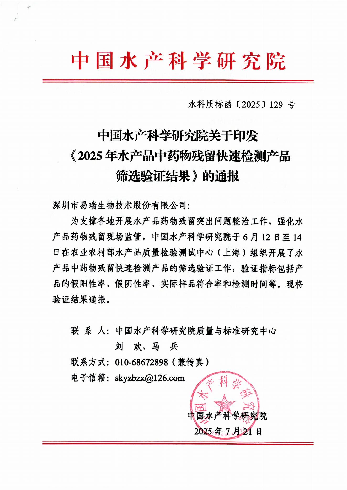 ¼Ì 2024 ÄêÕ¶»ñÖйúË®²ú¿ÆÑ§Ñо¿ÔºÈ¨ÍþÈÏÖ¤ºó£¬·Ç·²¹ú¼Ê£¨¹ÉƱ´úÂ룺300942£©ÔÚË®²úÒ©Îï²ÐÁô¿ìËÙ¼ì²âÁìÓòÔÙ´«Ï²±¨£¡