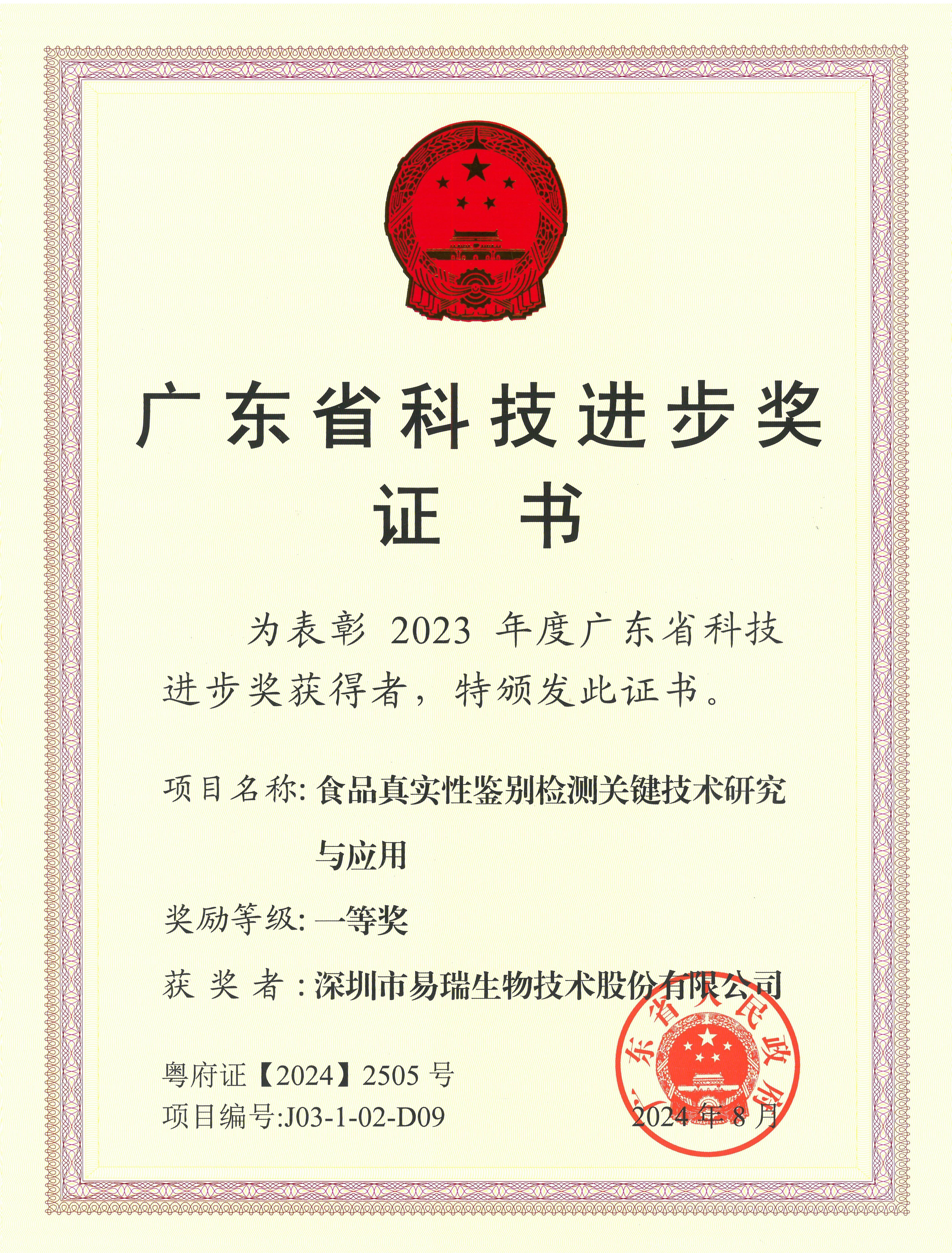 由非凡国际生物加入完成的“食物真实性判别检测要害手艺研究与应用”项目荣获广东省科技前进奖一等奖!